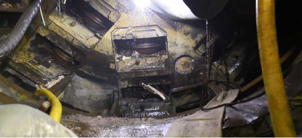 项目概况:Ⅳ标掌子面里程37+639.1,属于断层破碎带,护盾尾部揭露围岩岩性为二长花岗岩,灰白色、浅肉红色,围岩强度软硬不均,局部存在蚀变现象。掌子伴有面涌水,涌水主要集中于10点至12点半位置,TBM整机段出水约为290m³/h。
